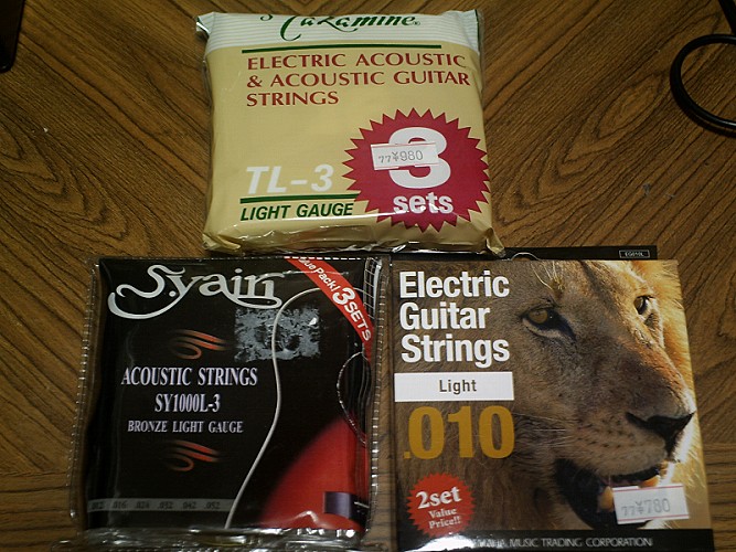 ギターはアコースティックでヤイリとTAKAMINE(y@はTAKAMINEだったので迷うことは無いです。・・・というかTAKAMINEの弦が全然売ってないんです。^_^)の弦を購入です。