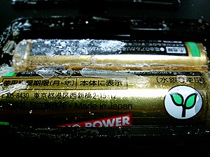 この後分解してみたら結晶だらけでした。こういう有害物質は触りたくないですね。(^_^;)そういえば、本館のブログでパソコンもどきなMSXを載せてたときも電池がエキモレしてましたね。