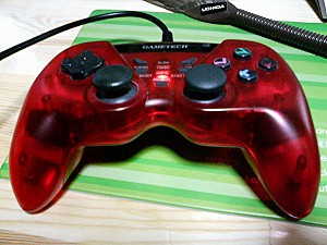 こっちは愛用のゲームテックのコントローラーです。激安(1000円ぐらい)なのにかなり使いやすいです。赤なのはもちろん好きなカラーだからです。