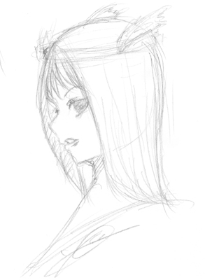鎌を持っているデザインのは前に描いたのを見ながら新たに描きました。ヘンテコな生き物を付けようかと思ったんですが、普段はそういうものを描かないのでカラーにするときにでも付けてみます。その前に練習だけはしますけど。(^^;)