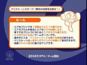 一人でひたすら掘っていくモードだとルールというルールはないですが、シナリオモードは毎回ルールがありますね。ステージによってはアイテムなども使え特定のブロックを消す・・・など出来ます。こういうところは落ちモノパズルです。(^_^)