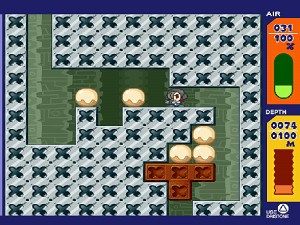 基本的にひたすら穴を掘っていくディグダグですね。あと、落ちモノパズルの要素があるのはなかなか面白いですね。